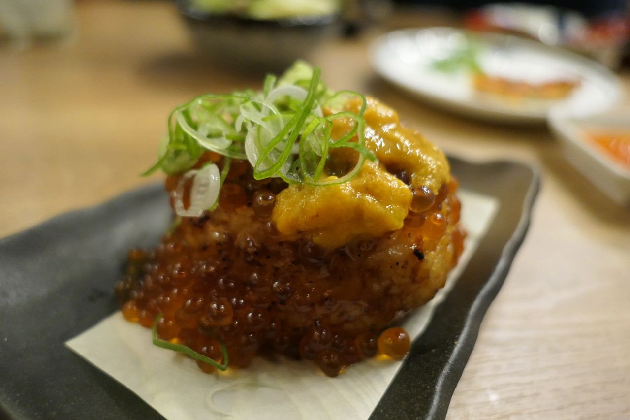 その上に生うにといくらが乗ってて