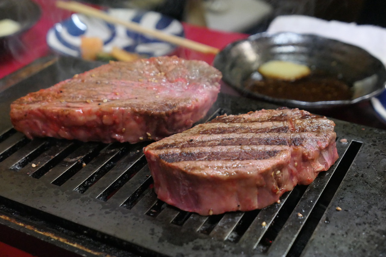 鉄板一杯に広がる大きなシャトーブリアン。