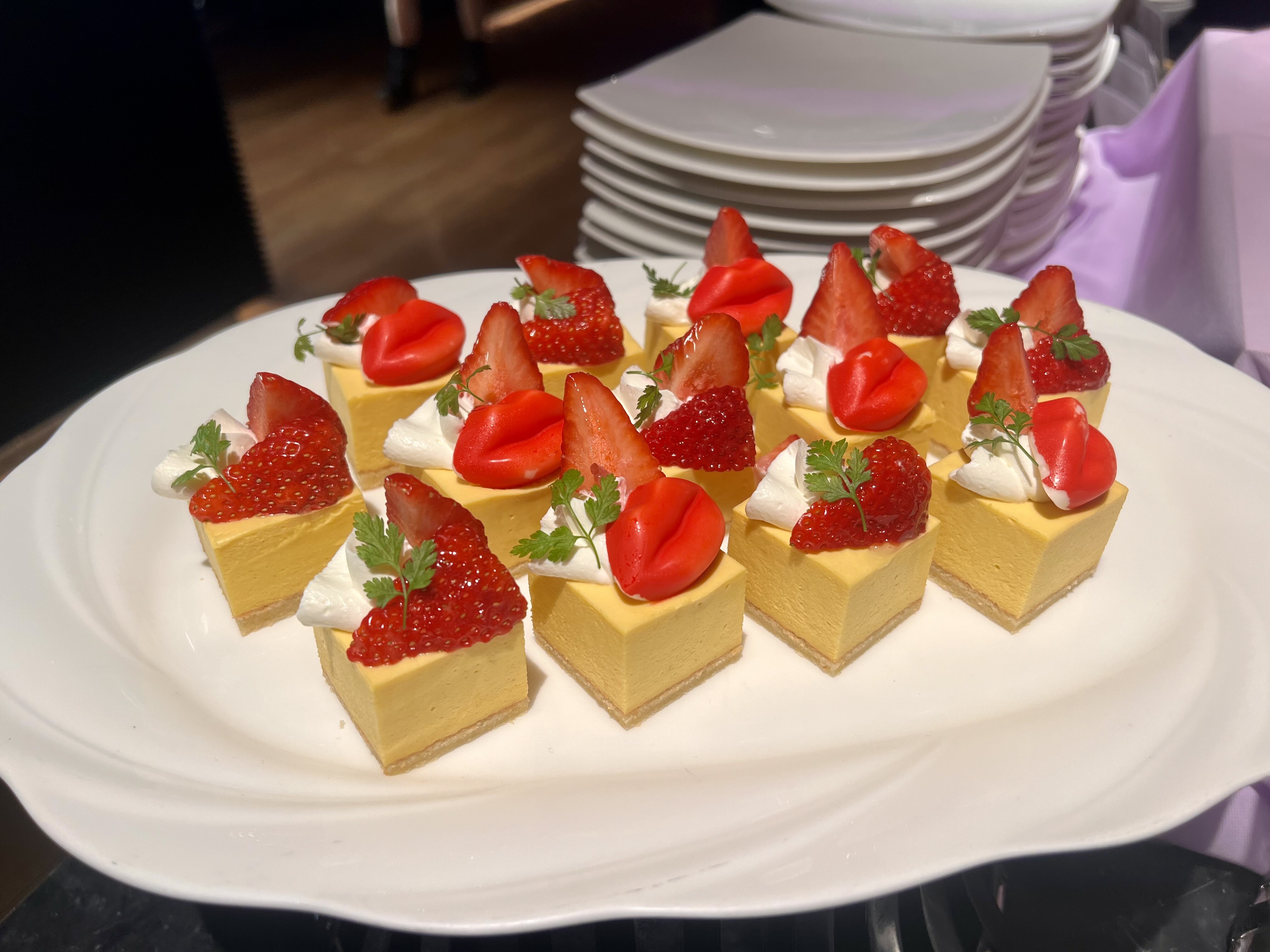 マンゴームースで上には唇のチョコレート💋