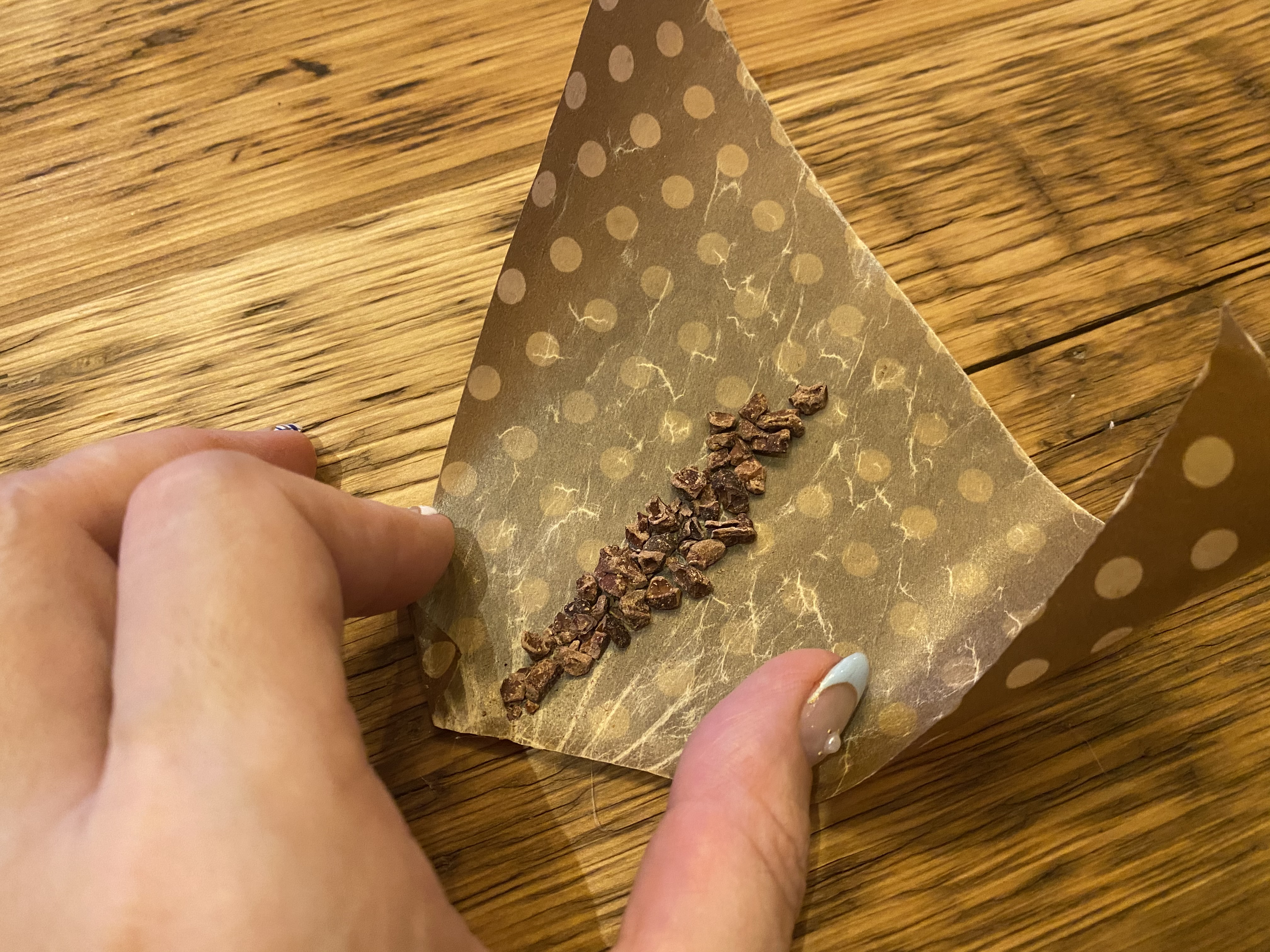 カカオニブをつまみながら飲みます。