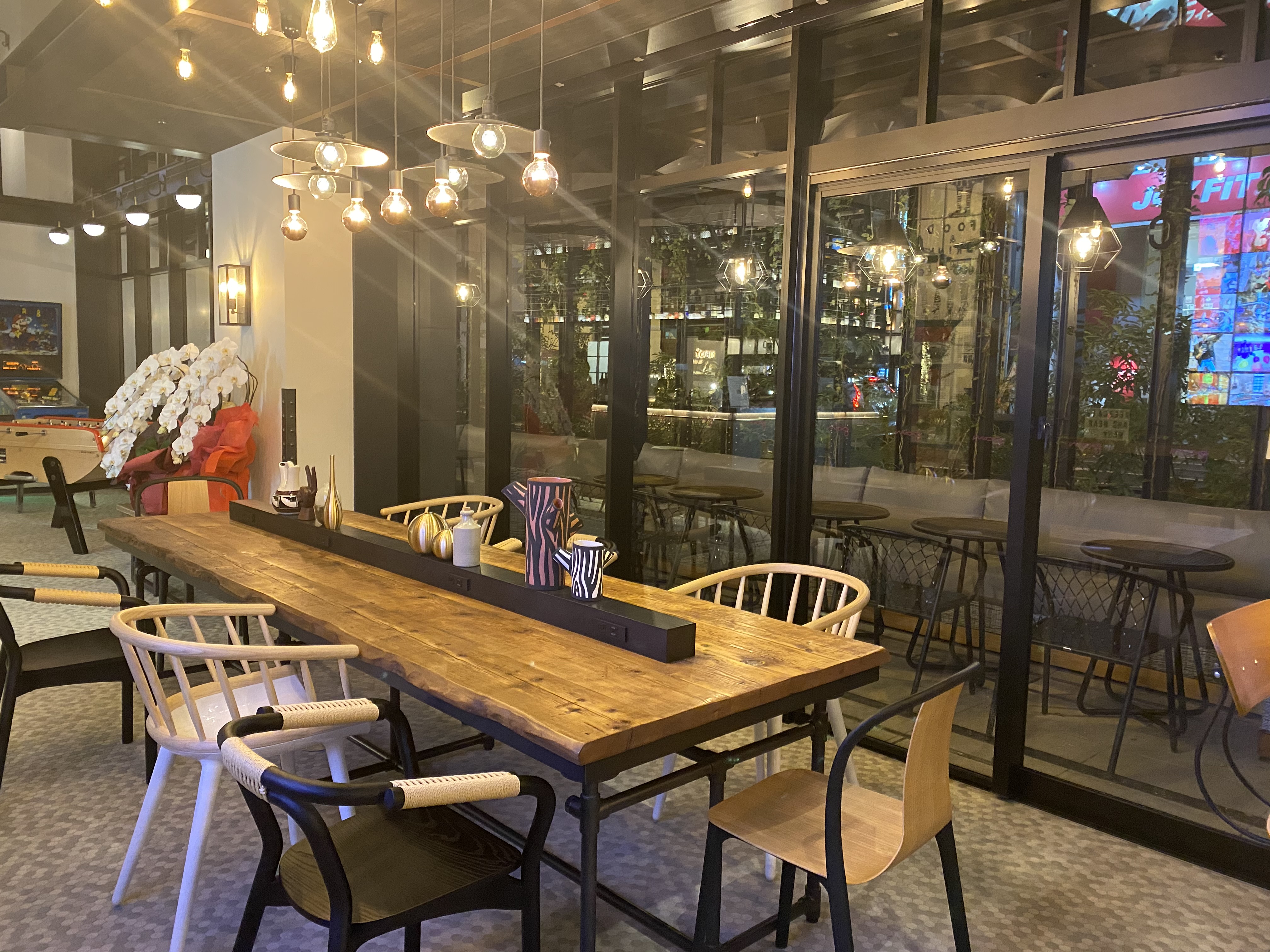 大テーブルなど好きなところに座りましょう。