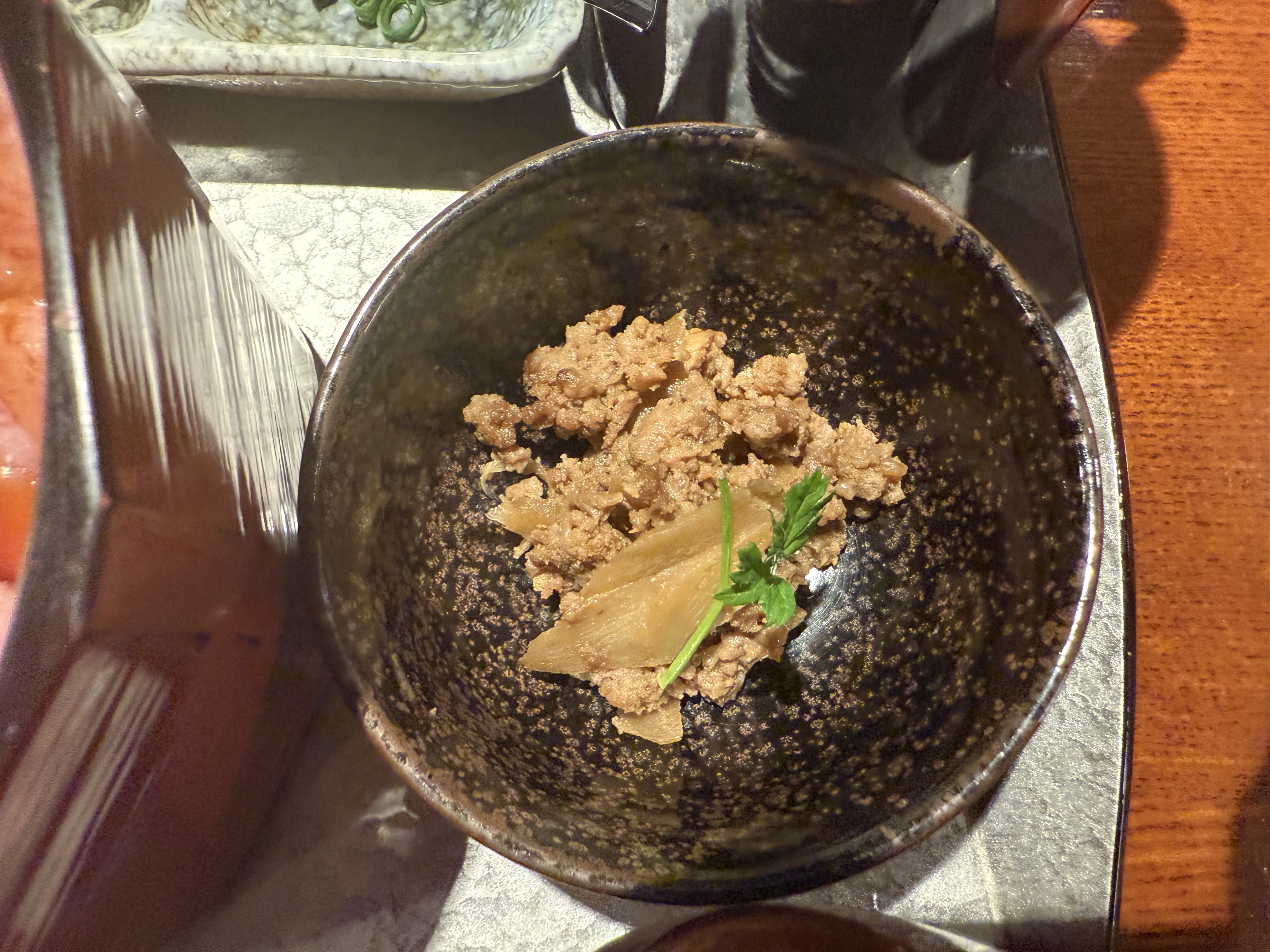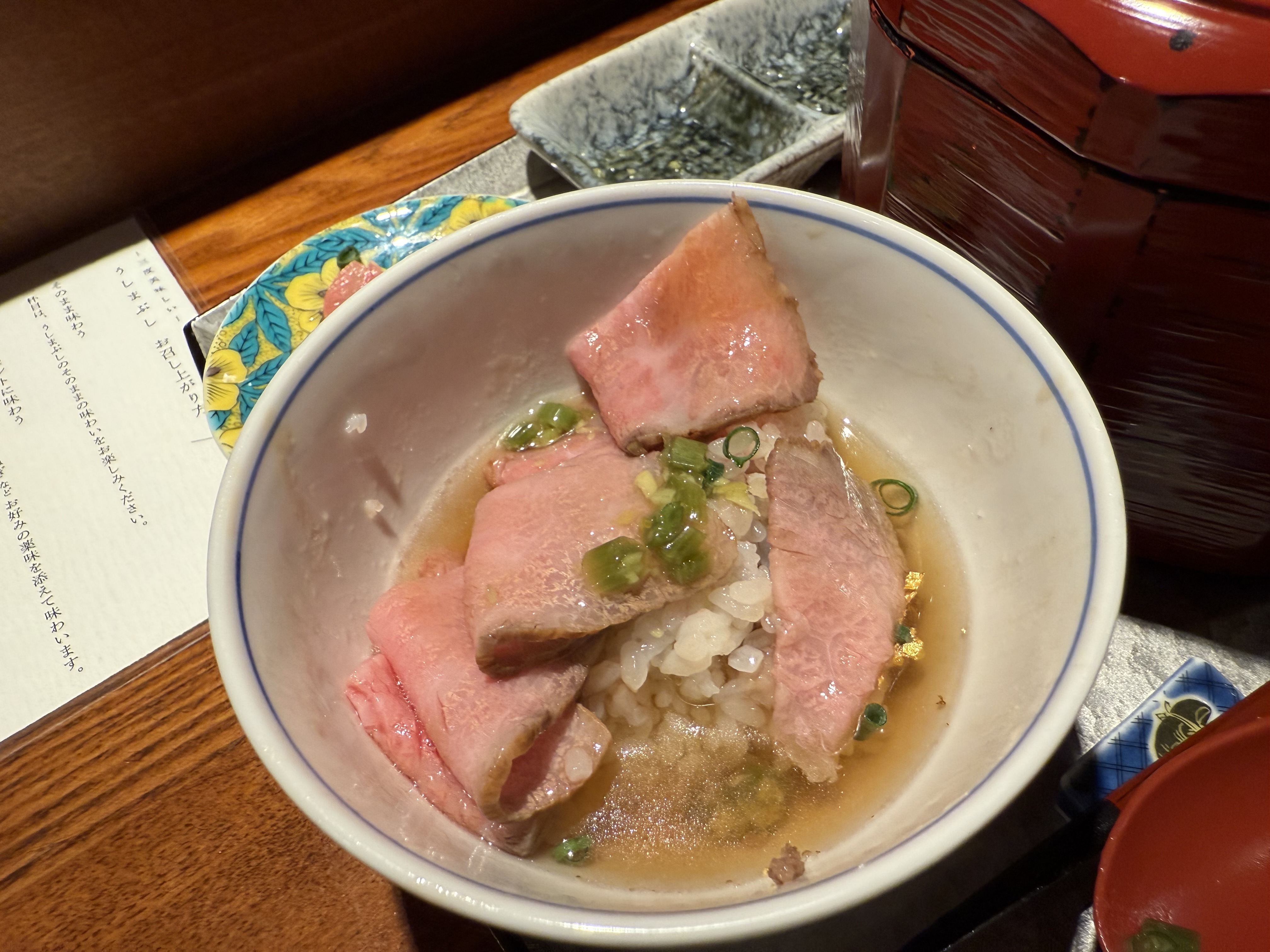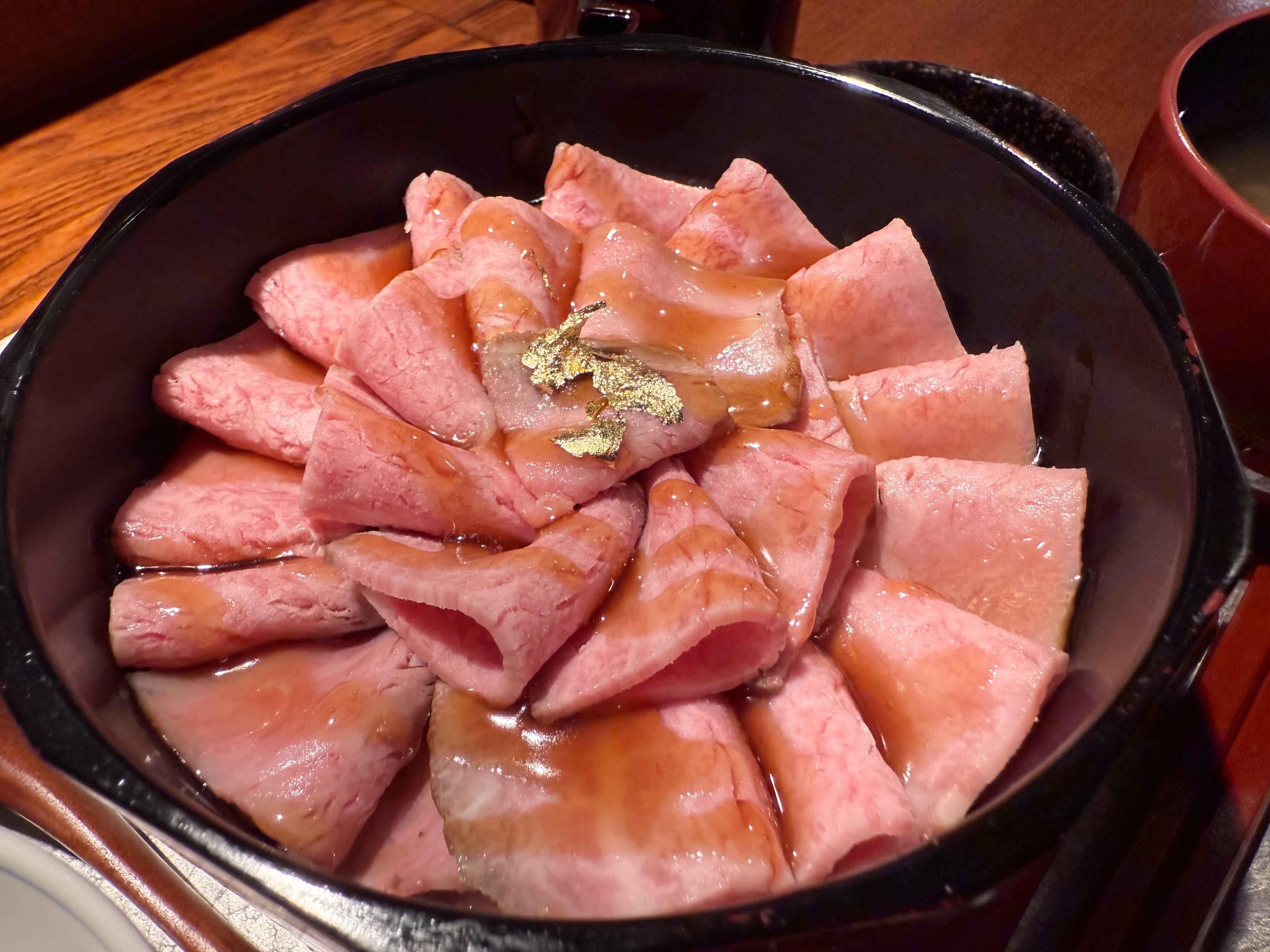 器の中に美しいレアの能登牛がきれ~に