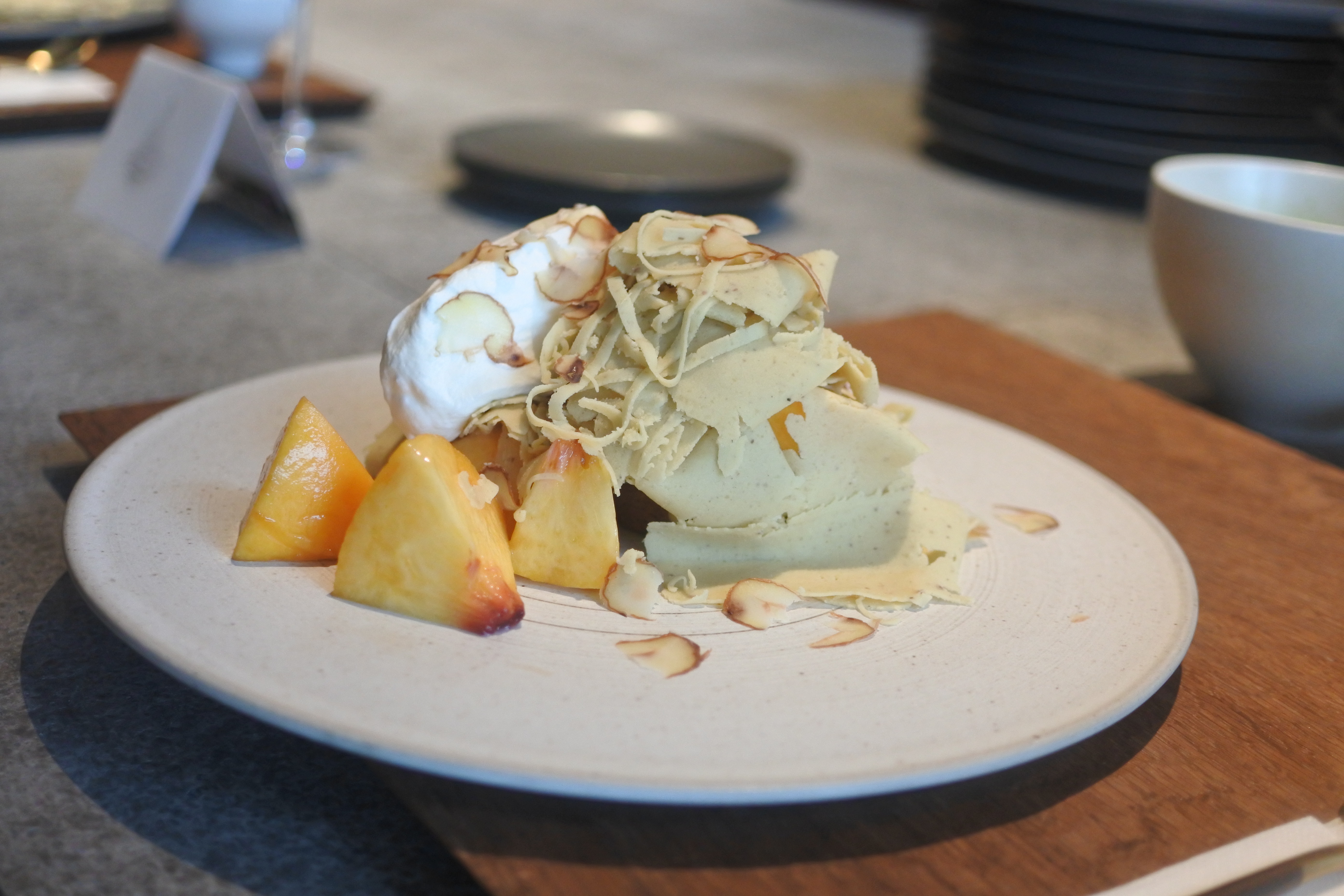自家製タルトと白桃の上に