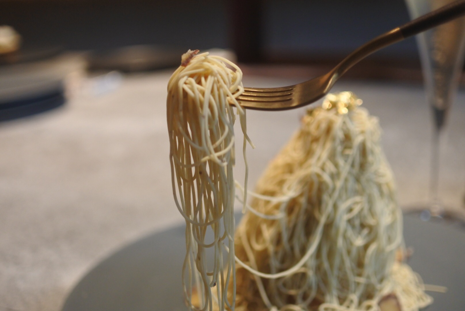 今度は錦糸モンブランでなく、平麺パスタの