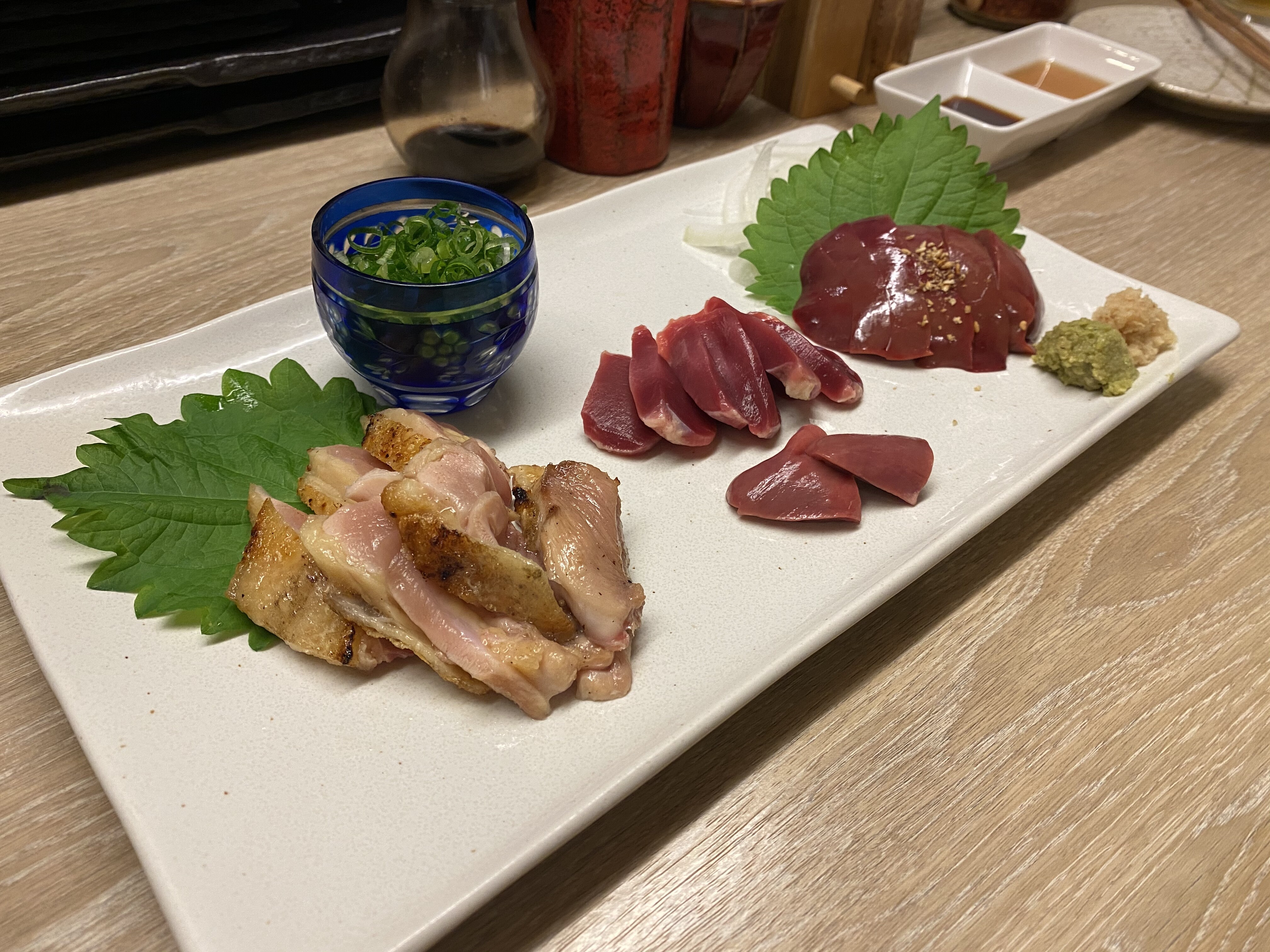 【鶏のお刺身盛り合わせ】1,300円。