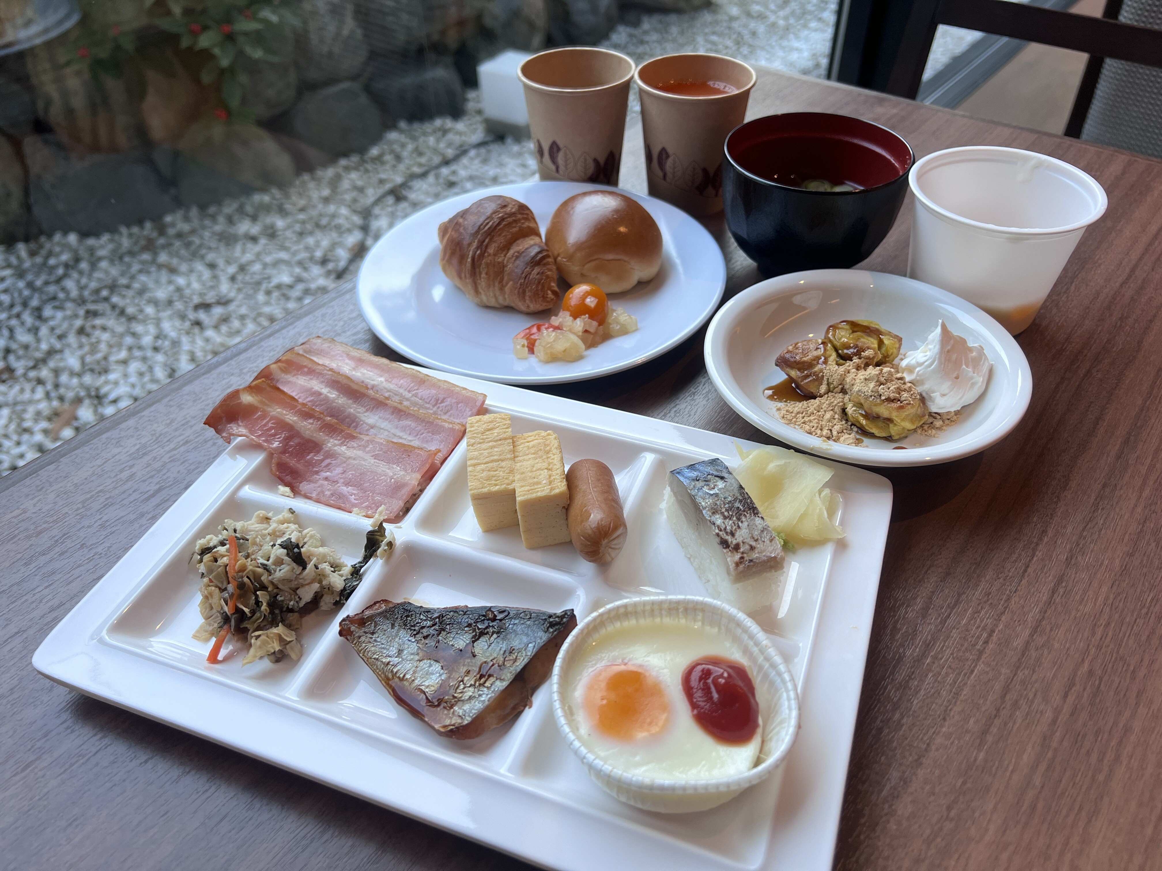 朝食は明るくて広いお店で