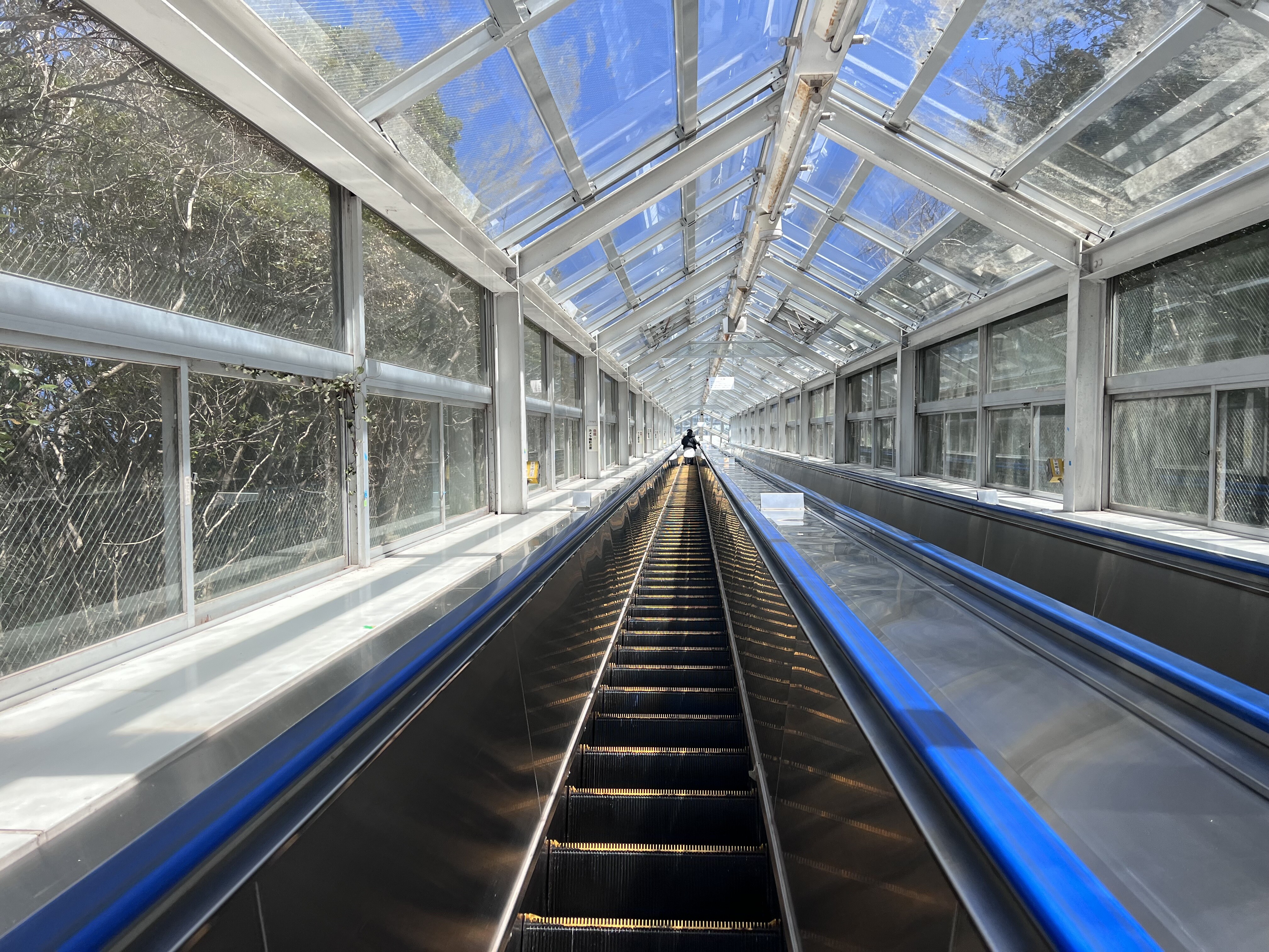 全長68mのシースルーエスカレーターで