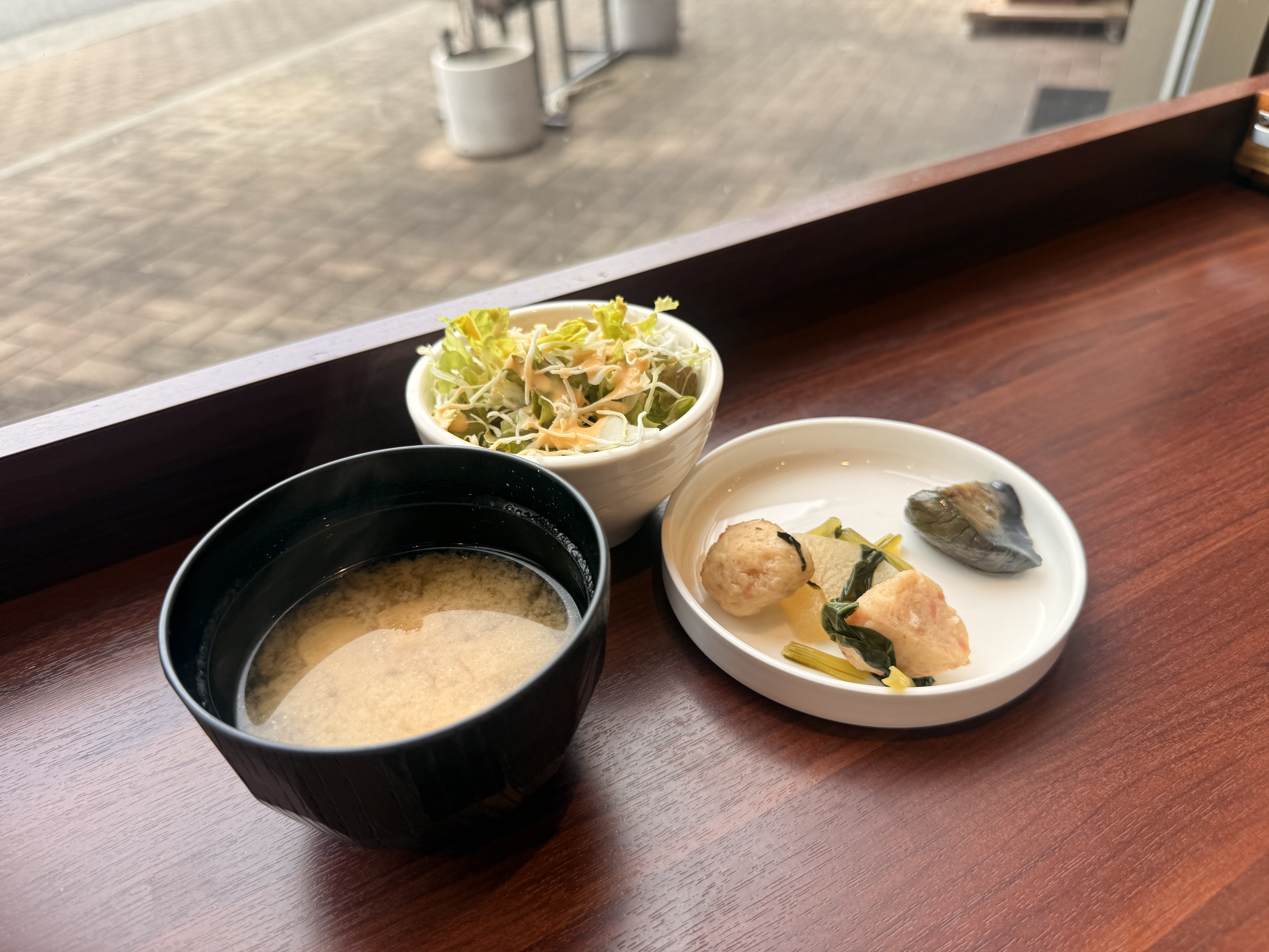 全てのメニューにライス、味噌汁、