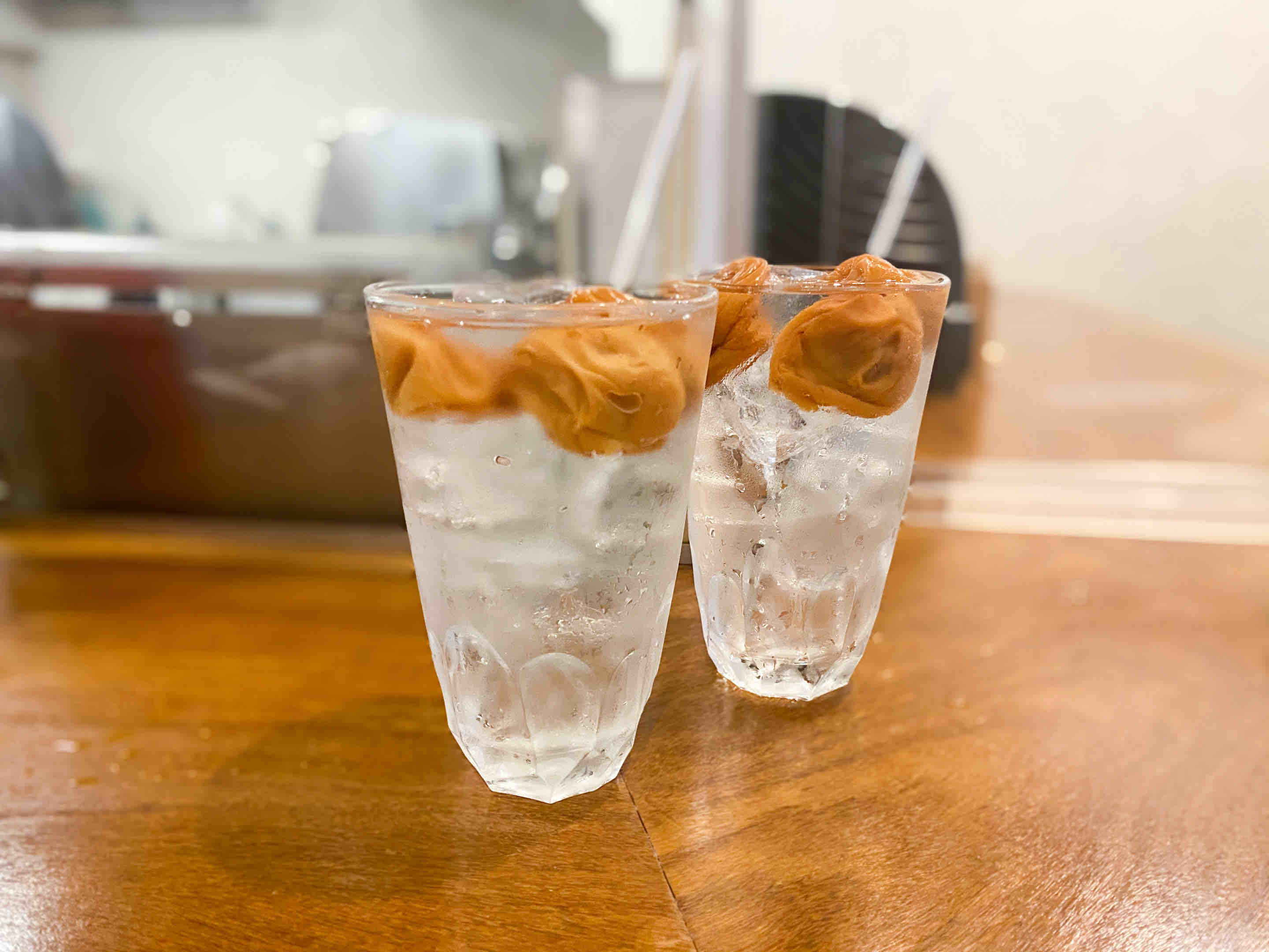 大きな梅干しなのでつぶしながら飲むと