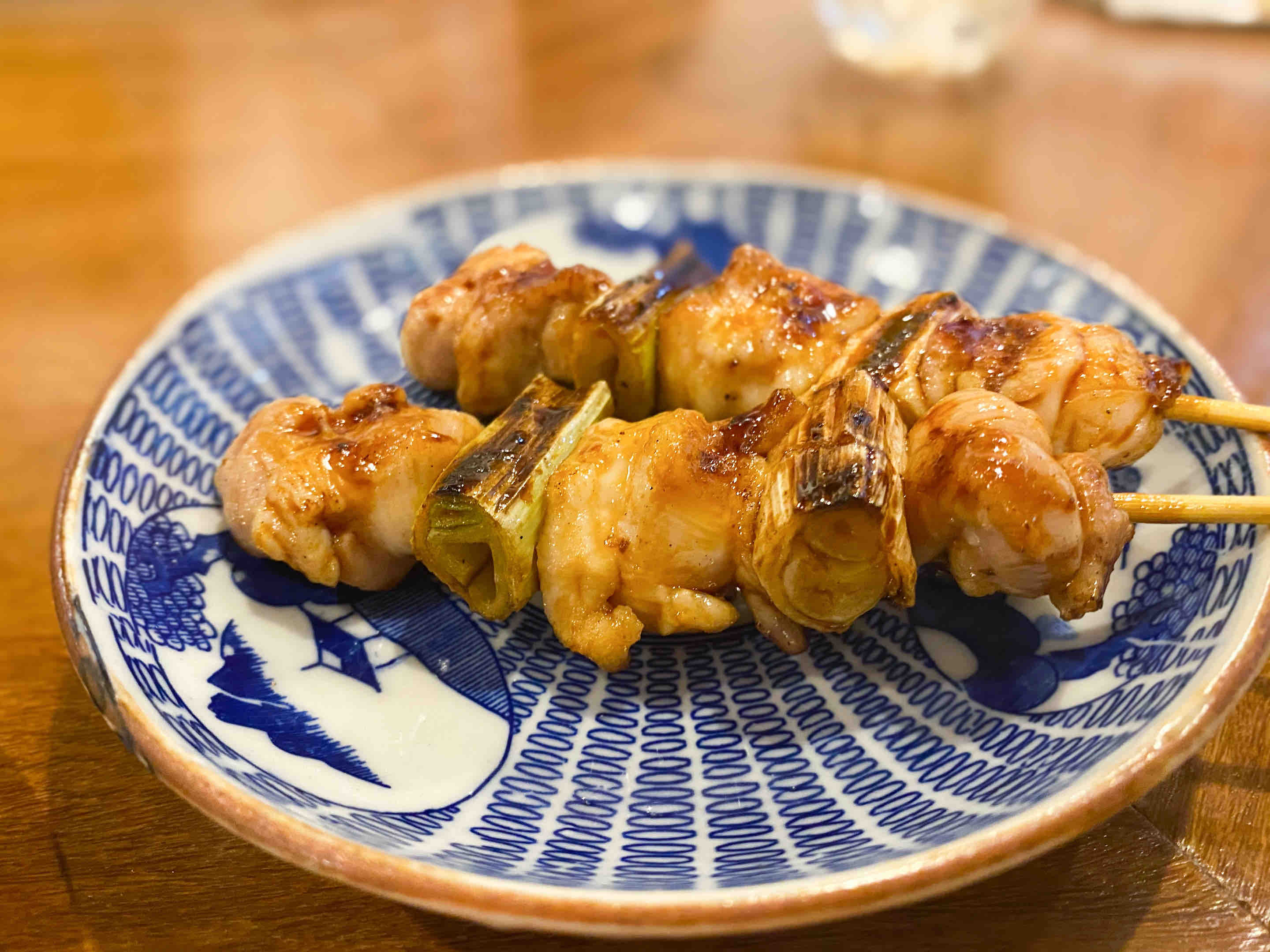 甘辛いタレをまとった鶏身にネギ。